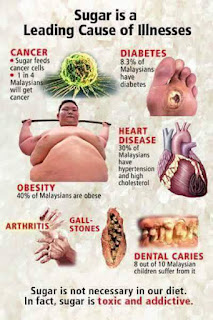 RAMAI tidak tahu penyakit kronik seperti kencing manis, darah tinggi dan jantung sebenarnya berpunca daripada gula, bukan lemak seperti diketahui umum selama ini. Gula diambil bukan sahaja secara langsung daripada minuman bahkan makanan berkarbohidrat seperti nasi selain manisan kuih-muih tradisional, kek dan aiskrim.