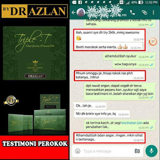 Setelah minum Triple-T proses detox akan berlaku dan paru-paru akan semakin sihat. Oleh sebab itu perokok akan rasa pahit bila merokok dan seterusnya berhenti merokok secara beransur-ansur.